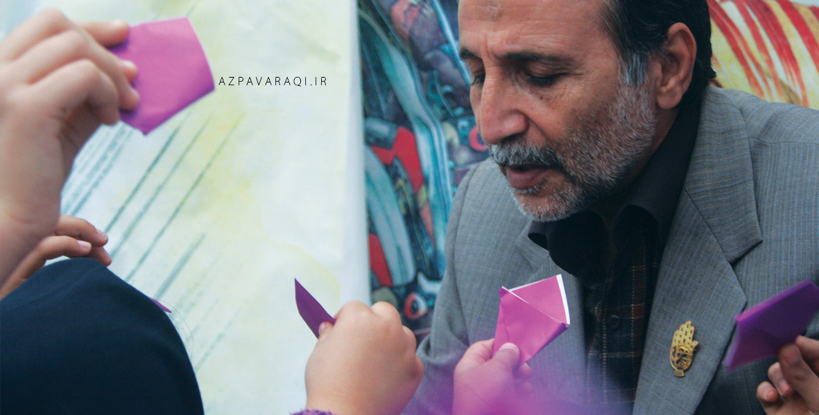 در نمایشگاه به بچهها نشان میداد چگونه لیوانی با تا زدن کاغذ درست کنند و میگفت: «از این به بعد، به یاد لب تشنهی حسین آب بنوشید.»