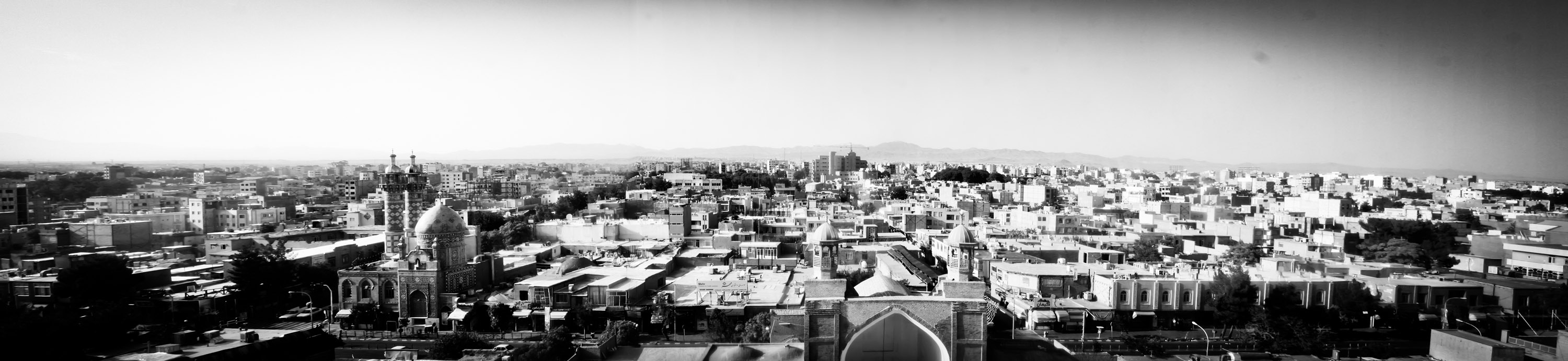 + عکس را هم از بالای مناره گرفتم؛ مسجد جامع سبزوار دو منارهی بزرگ دارد که من الآن همانجا هستم، و دو منارهی کوجک، که در عکس میبینید.